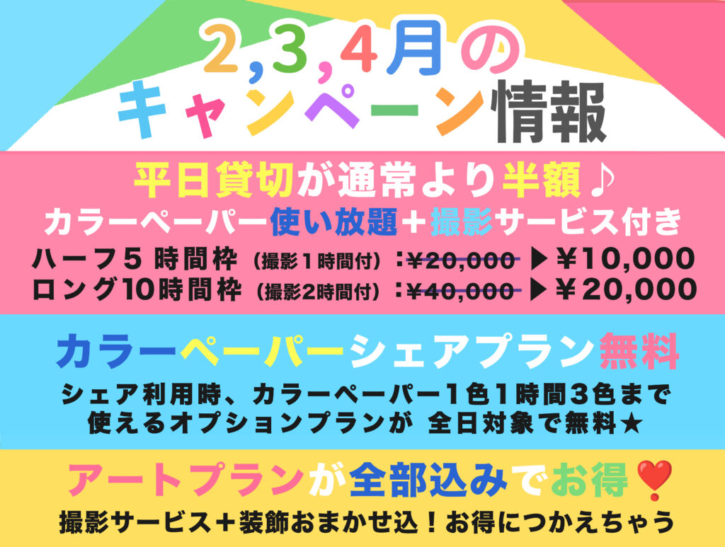 🌟全日対象☆シェア利用時、カラーペーパーシェアプラン無料